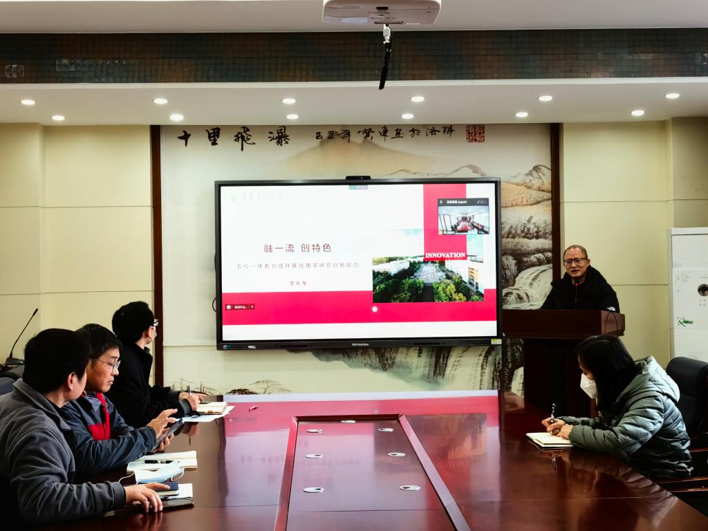 他强调,要按照党的二十大报告的决策部署,坚持创新是第一动力,坚持创新在科技发展全局中的核心地位,深入实施科教兴国战略,创新驱动发展战略,不断的开辟发展新领域新赛道,不断的塑造发展新动能新优势,共同打造一流理学、美丽理学。