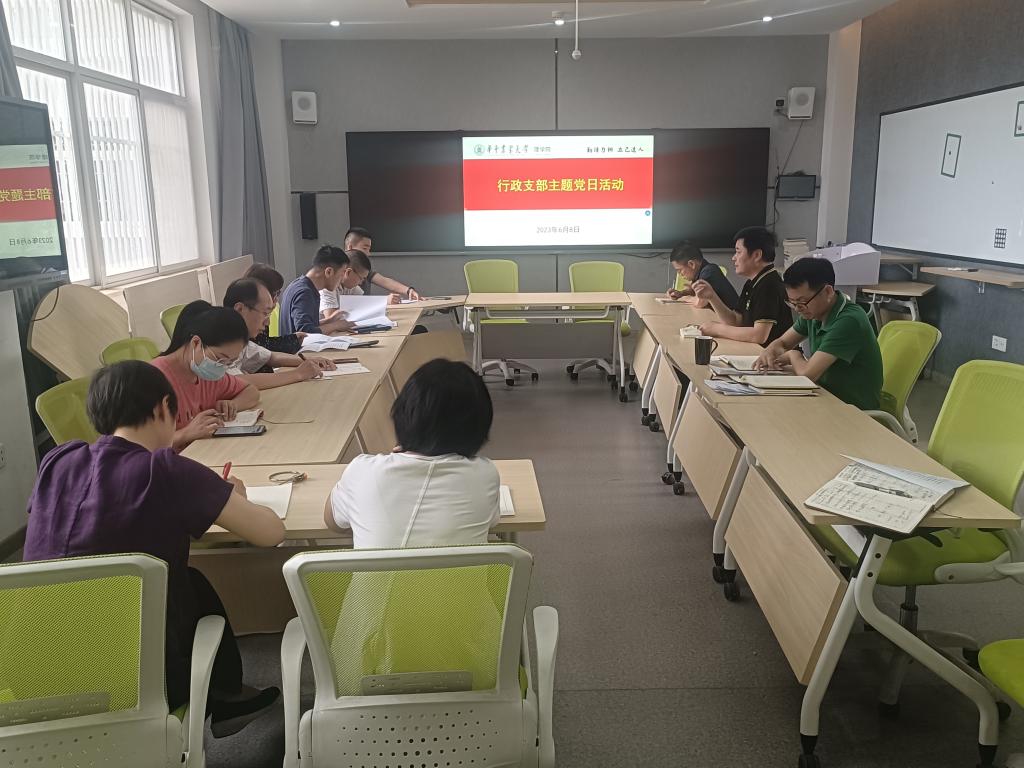 (通讯员:汪献芳)6月8日下午,行政教工党支部在逸夫楼B221会议室开展主题党日活动,深入学习贯彻习近平总书记在中共中央政治局第五次集体学习时的重要讲话精神,行政教工党支部全体党员参与学习研讨,会议由行政教工党支部书记成协设主持。