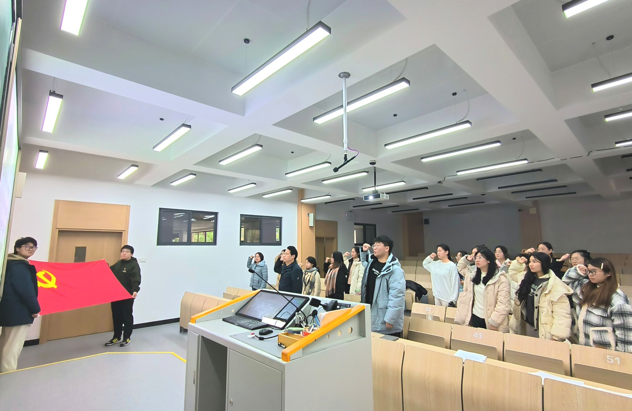 会议高潮部分,全体参会党员在党旗下庄严宣誓,誓言铿锵有力,表达了他们为共产主义事业奋斗终身的决心与信念。柳晓珊老师在总结发言中,对新加入的预备党员表示了热烈的祝贺,并寄予厚望,鼓励他们珍惜荣誉,不忘初心,继续在学习、科研、社会服务等方面发挥先锋模范作用,不断提升自我,为实现中华民族伟大复兴的中国梦贡献力量。