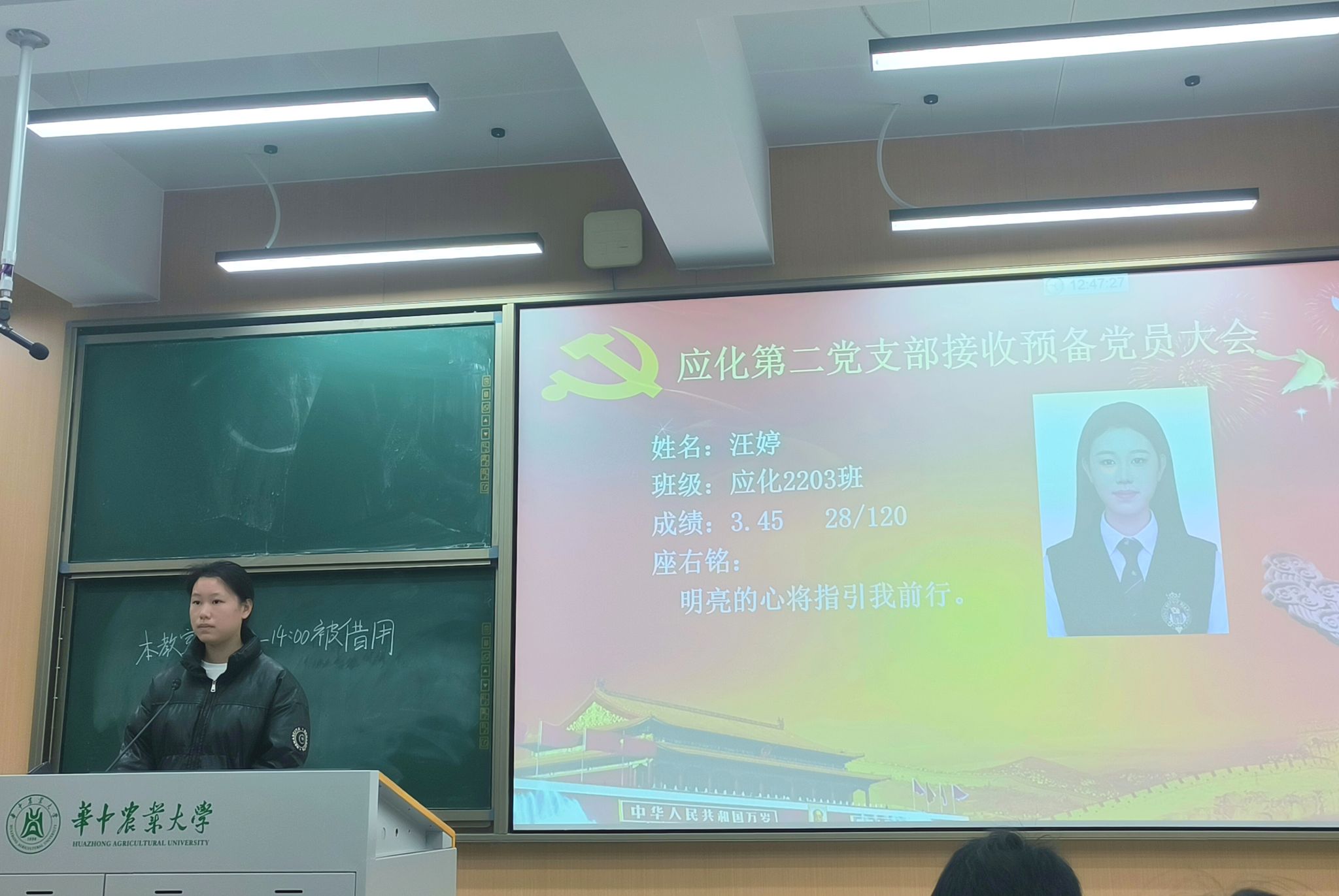 应用化学本科生第二党支部于第二教学楼103教室隆重召开了预备党员接收大会。