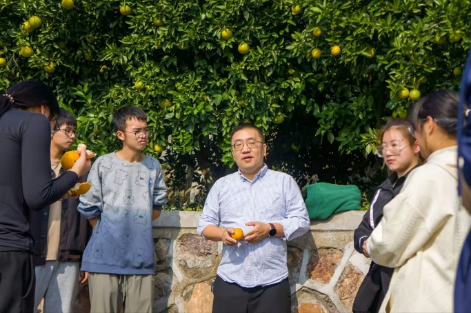(通讯员段丽君、靳盛西)一年好光景,最是橙黄橘绿时。在这个收获的金秋时节,应用化学2024级和2022级部分学子在刘永红和段丽君两位老师的带领下,走进柑橘园,实地体验了一次学科交叉融合的思想碰撞。