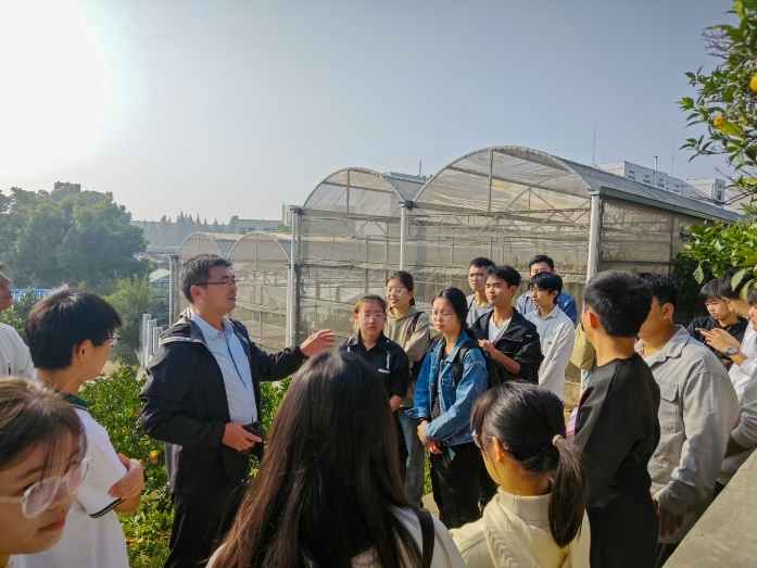 应化2022级汪婷在参观后说“这一次果园研学活动让我印象深刻,柑橘选育是一项漫长而艰辛的科研工作,它往往需要历经数年的耐心等待与不懈努力。从最初的种质资源收集,到杂交育种、后代筛选,再到最终优良品种的培育与推广,每一个环节都充满了未知与艰辛。在学长的悉心讲解下,我了解到了化学知识如何巧妙地应用于果树生长,从土壤改良到病虫害防治,处处体现着学科交叉的魅力。在乡村振兴这一宏伟蓝图的引领下,这次体验让我更加期待能够结合自己的专业知识,助力柑橘选育的发展。”