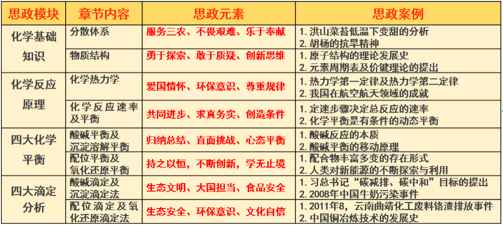 针对学生实际情况,团队本着以学生发展为中心的理念,遵照“新农科新工科”对现代环境工程类人才培养的新要求,以“夯实基础,提升能力,联系专业”为教学举措,进行了一系列的课程教学改革与探索,提出了创建“四化同步”为特色的无机及分析化学教学模式。具体而言,四化即通过课程思政精准化、教学内容前沿化、教学方式信息化及课程考核多元化等多重手段的运用,实现补齐短板,夯实学生的理论知识,密切联系专业实际,激发学生自主学习的兴趣,通过启迪学生的科学思维,促进学生高阶思维形成的育人目标。