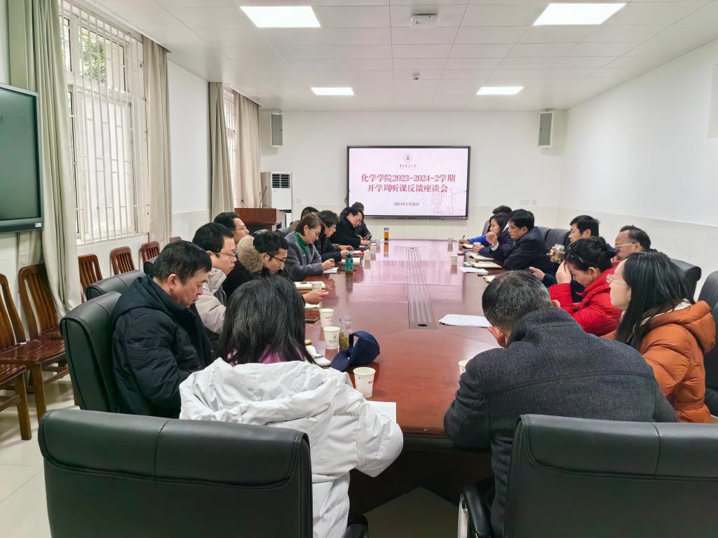 在化学楼A106会议室召开新学期开学第一课听课反馈座谈会。校党委常委、组织部部长、统战部部长李向东,学校职能部门相关老师、88看球吧