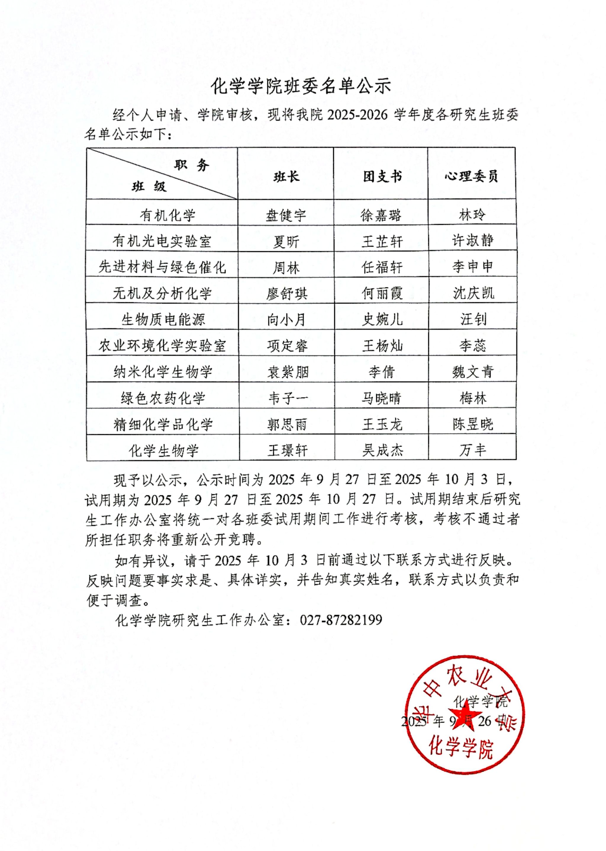 地址:湖北省武汉市洪山区狮子山1号华中农业大学化学楼