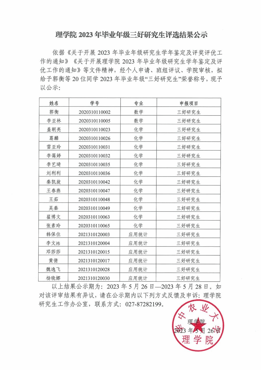 理88看球吧 2023年毕业年级三好研究生评选结果公示