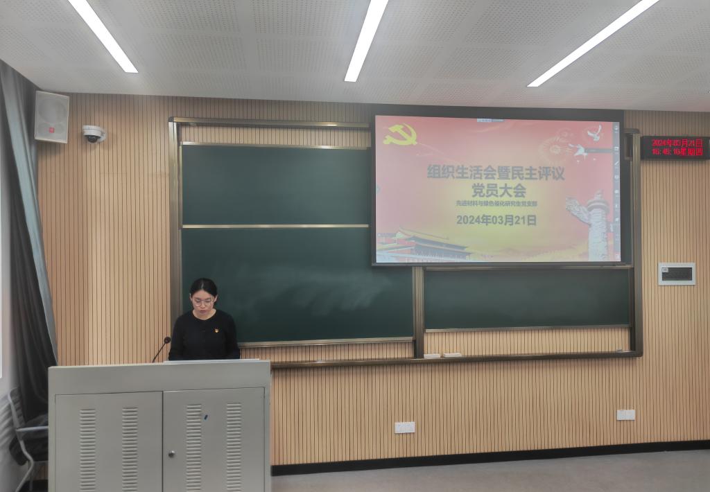 先进材料与绿色催化研究生党支部2023年度组织生活会暨民主评议党员大会在一教106召开,党支部书记李玉悦主持会议,支部全体党员参会,研究生辅导员刘畅参会指导。