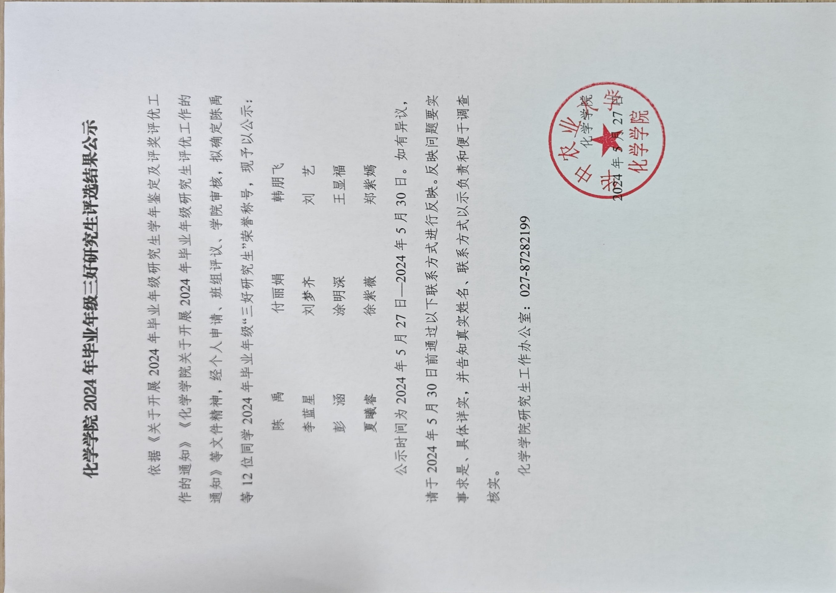 88看球吧 2024年毕业年级三好研究生评选结果公示