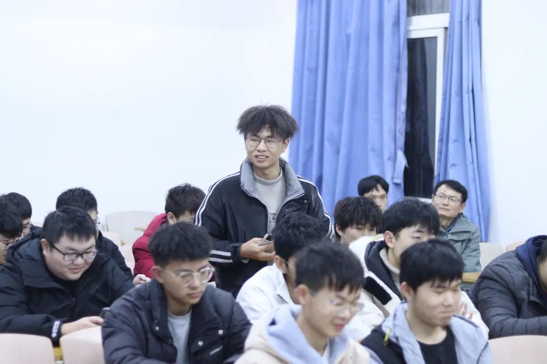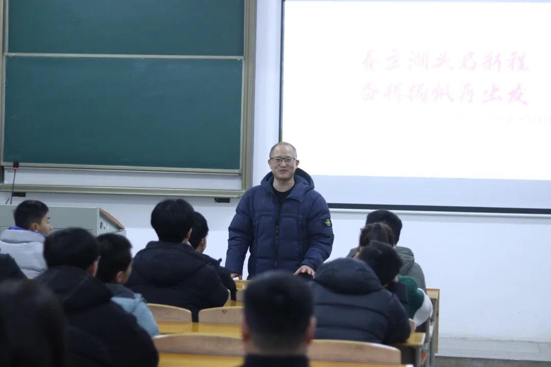 领导班子来到光电2202班,旁听主题为“春立潮头启新程,奋楫扬帆再出发”的班会。班主任陈建军老师让同学们每个人用诗句或者是其他形式分享一下自己的寒假生活或者感受。他希望同学们在接下来的大学生活里能够不虚度光阴,好好学习,不管过去半年如何,现在站在一个新的起点,奋楫扬帆再出发,让自己度过一个充实的大学。