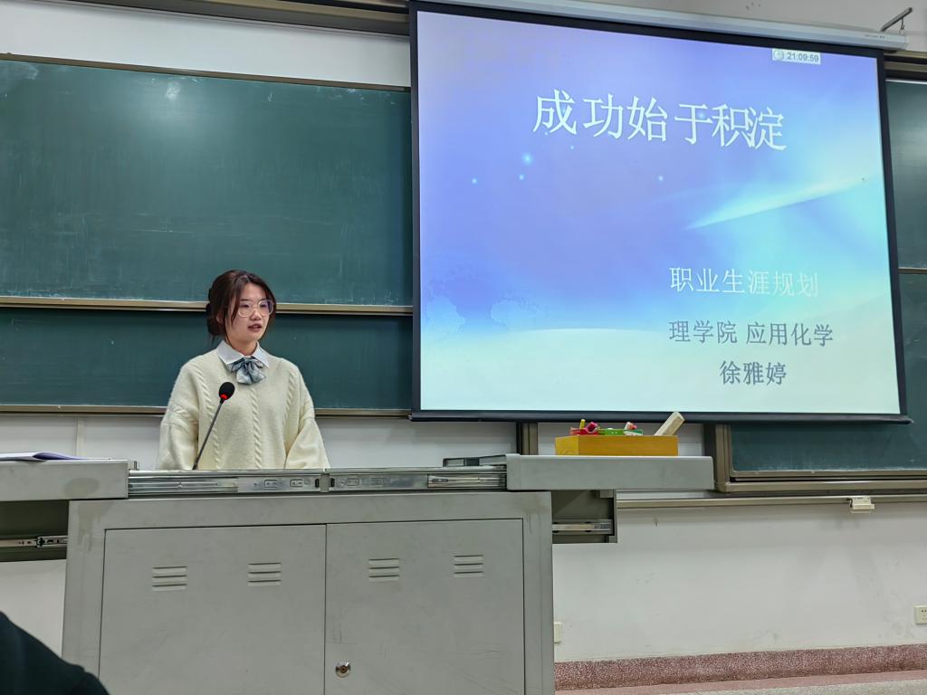 最后,辅导员柳晓珊老师为各位同学进行颁奖,并勉励大家在今后的生涯规划中,一定要确定好自身的职业定位,努力去闯,努力去干,在青春韶华之中,实现自我价值,不断为党和人民做出更大的贡献。
