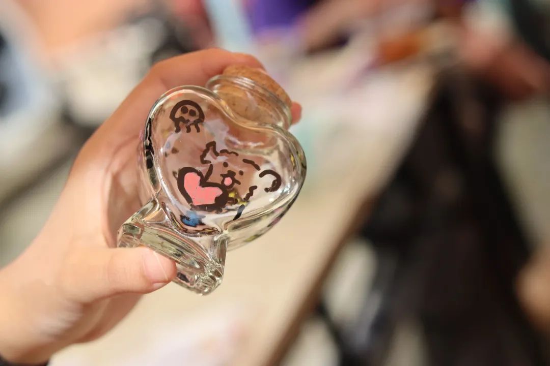 手拿成品的一位同学说:“通过本次活动,我体会到了用自己的双手让旧物换新颜的乐趣,重新赋予身边旧物新的价值,整个活动过程我感觉非常享受。”