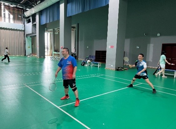 比赛中,师生展现了出色的球技和无与伦比的毅力,许多精彩瞬间让人难忘。在一场师生混合双打比赛中,康勤书老师在网前巧妙地放了一个短球,成功化解了对手的进攻。在另一场男单比赛中,马洪山同学凭借顽强的意志和出色的技术,完成了一次精彩的逆转。运动员们在各个项目中挥洒汗水、奋勇拼搏,用行动诠释着体育精神。