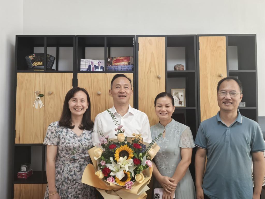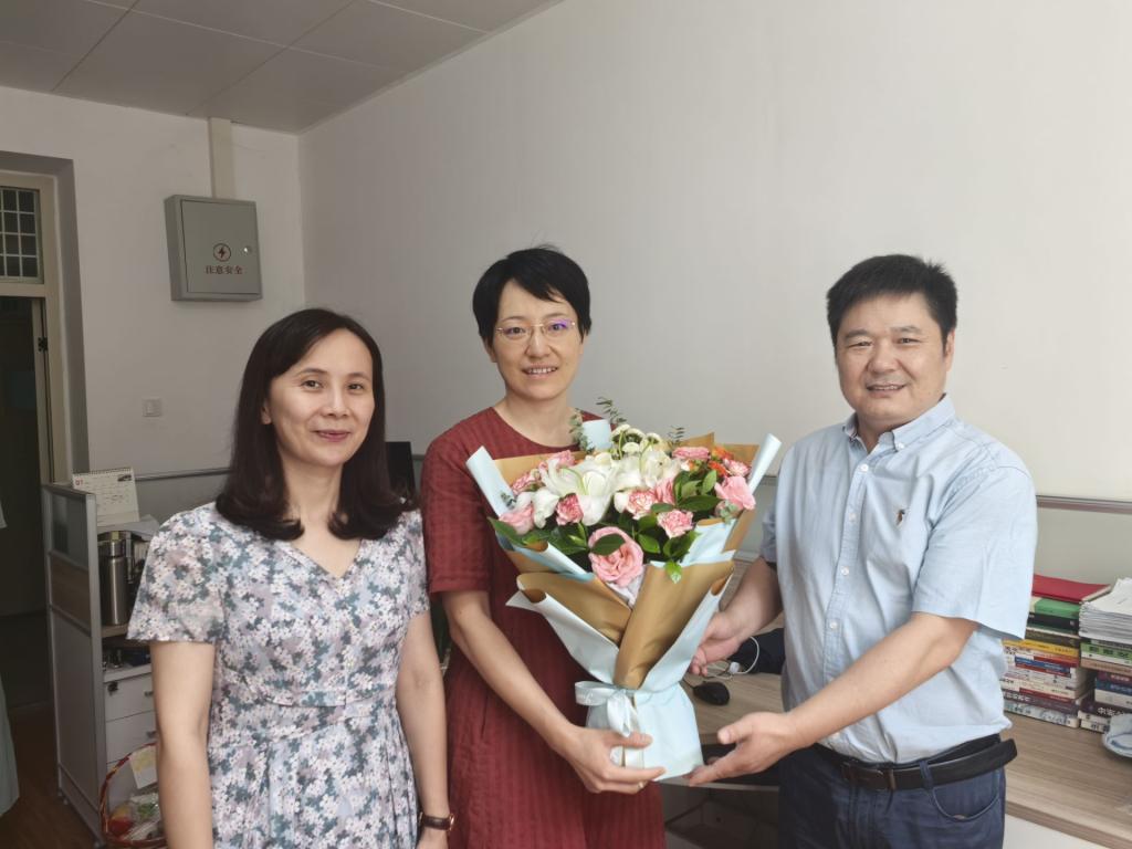 党委书记涂俊才、院长曹菲菲、副院长、工会主席曹敏惠及相关老师看望陈浩、陈璐两位老师,向他们献上一束鲜花,道一声“节日快乐”,通过他们向院教师送上节日的问候和祝福。