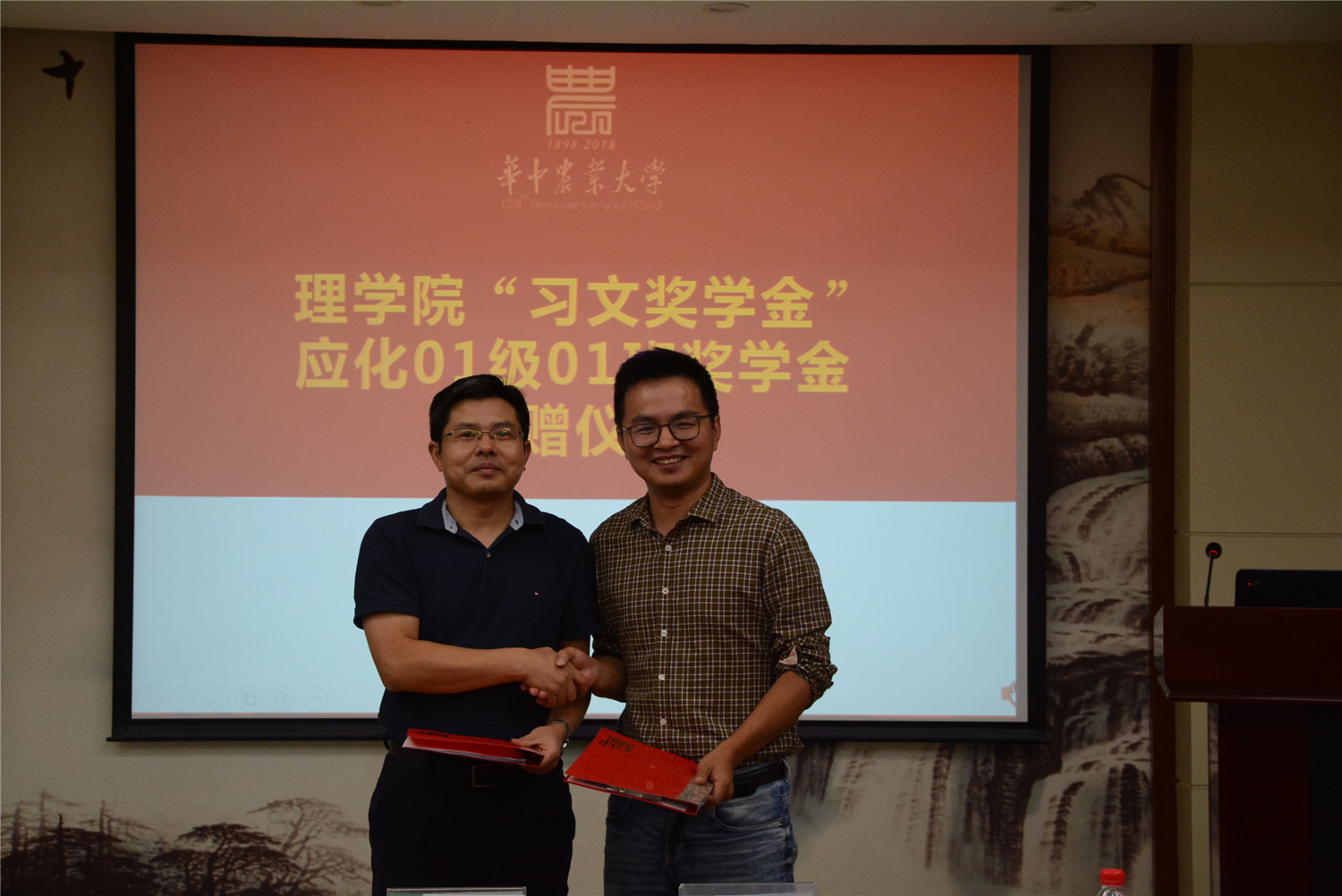 “习文奖学金”、应化01级01班奖学金捐赠仪式在逸夫楼B212举行。校友许习文,应化01级01班代表项勇刚,学校校庆工作办公室副主任付军,理88看球吧