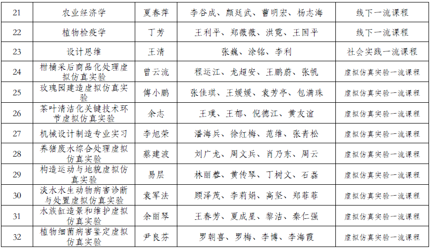 (通讯员:柳晓珊近日,湖北省教育厅发布了《省教育厅关于公布2022年度省级一流本科课程认定结果的通知》(鄂教高函〔202216号),我校有32门课程被认定为2022年度省级一流本科课程。其中,线上一流课程7门、线上线下混合式一流课程6门、线下一流课程9门、社会实践一流课程1门、虚拟仿真实验一流课程9门。
