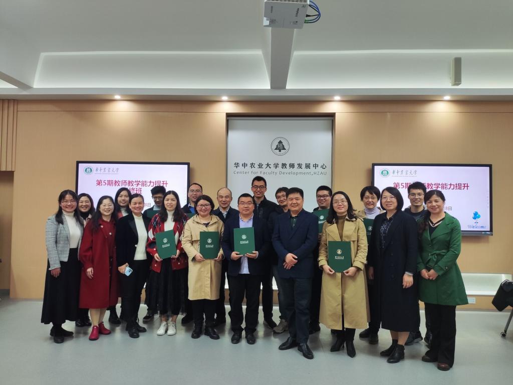 范钰玲老师说:集中的学习,时间紧、任务重,但走过来之后发现,真是学习到了很多,让我对教学有了更深刻的理解,让我更有信心能够上好一堂课;引导员曹敏惠老师希望老师们能够认真沉淀集中学习的成果和感受,在今后的教学实战中多多演练,也希望今后能有越来越多的老师加入到引导员的队伍中来,共同为华农的教师教学发展出一份力。最后,第五期教师教学能力提升研修班在每一位“学员”成功获得结业证书,脸上洋溢着开心的笑容中圆满结束。