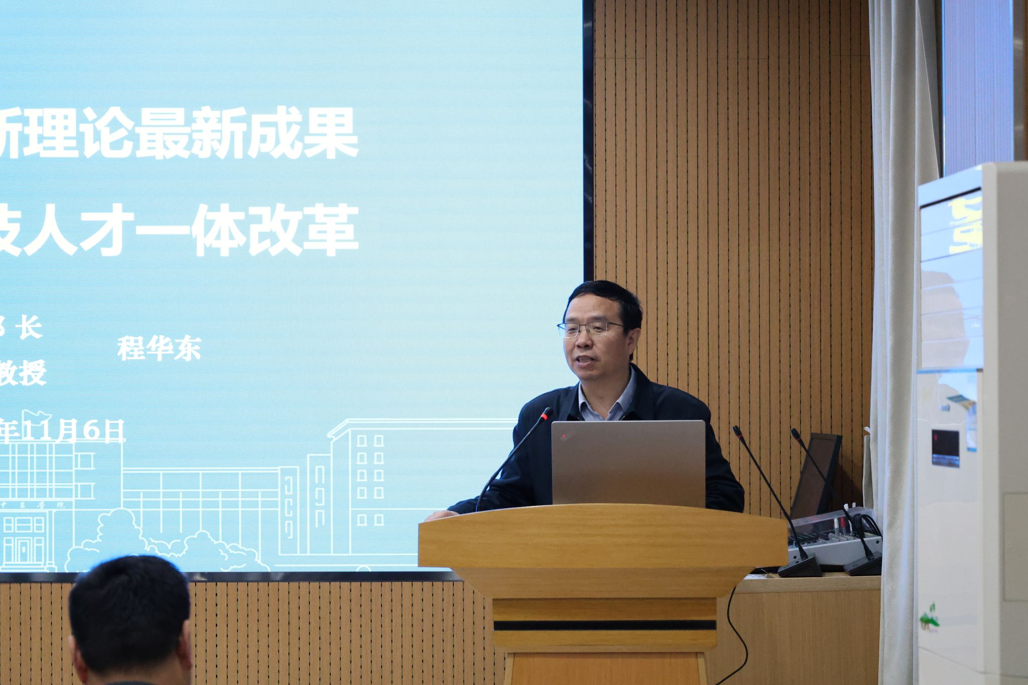 在化学楼A102报告厅开展《习近平谈治国理政》第五卷专题学习,“精读精讲”学校宣讲团成员、发展规划部部长程华东以“深悟党的创新理论最新成果 力推教育科技人才一体改革”为题作专题辅导报告。88看球吧