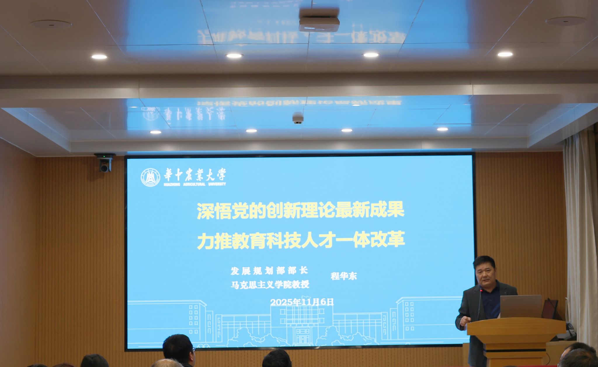 实际,程华东指出,一体推进教育、科技、人才发展是《习近平谈治国理政》第五卷的鲜明主线和实践要求,要聚焦学校第十一次党代会提出的目标任务,以质图强、融创致新,以 “七大一新”布局为牵引,以五链变革为驱动,深入推进教育科技人才一体化改革,重构教育科技人才一体化发展生态体系,全面提升服务人才自主培养和科技自立自强贡献力。他强调,理论学习要注重“五重境界”,思维养成要培养“七种能力”,研究工作要聚焦“四个理”,推进工作要把握“五条线”,教育创新要掌握“五种术”,在常学常新中加强理论修养,在真学真信中坚定理想信念,在学思践悟中牢记初心使命,在细照笃行中不断修炼自我,在知行合一中主动担当作为,为建设世界高等农业教育高地、农业科技创新策源地和优秀人才富集区而不懈奋斗。