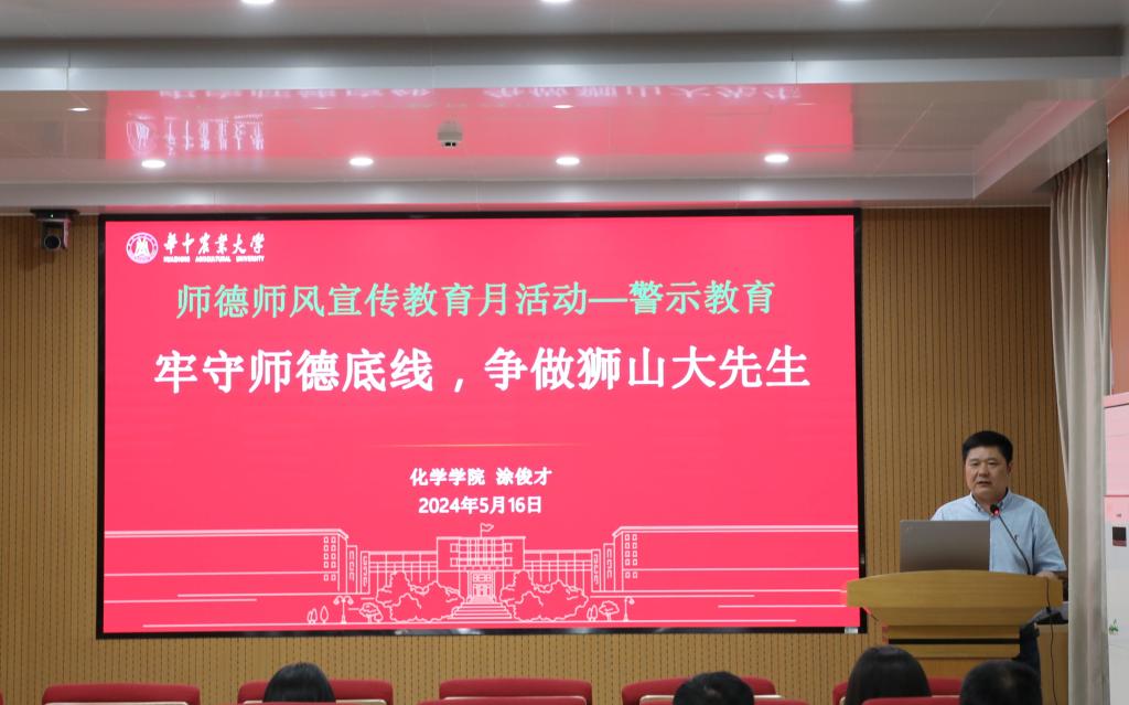 涂俊才以“牢守师德底线,争做狮山大先生”为题开展师德师风警示教育。他从身边发生的师德失范典型案例切入,要求全体教师以案为鉴、以案明纪、以案促改、以案促治,切实加强学术诚信和师德师风建设,坚定维护学校健康学术生态和良好育人环境。