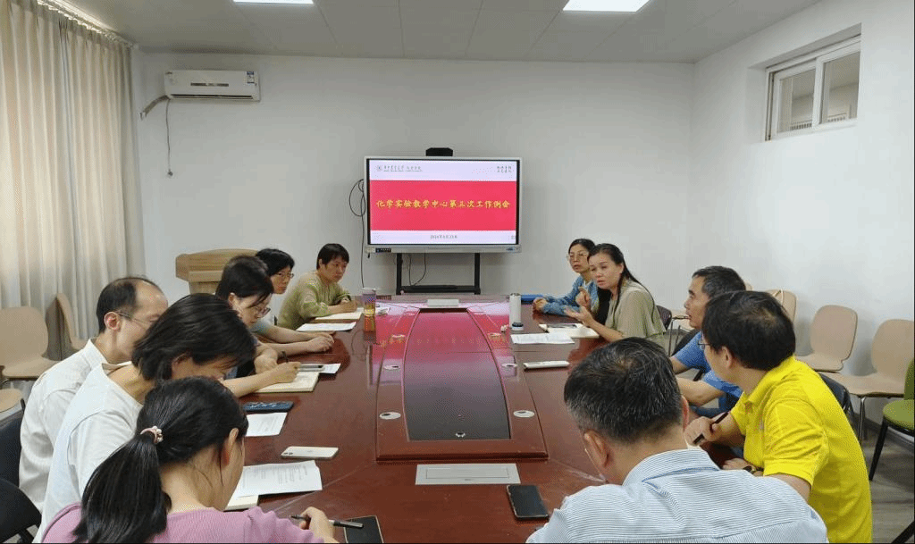 为总结近期实验教学中心运行情况,加强化学实验教学中心规范化管理,5月23日下午,化学实验教学中心在化学楼A104召开本学期第三次工作例会,副院长、中心主任曹敏惠,中心副主任石炜、王嘉讯老师和全体实验技术人员参加会议,会议由副院长曹敏惠主持。