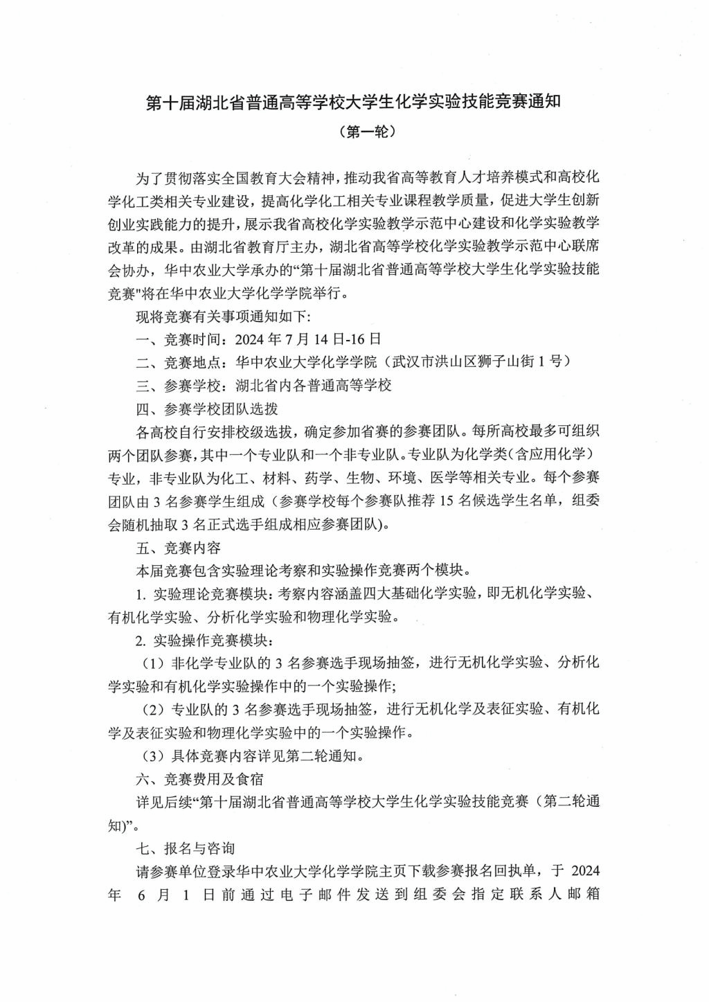 第十届湖北省普通高等学校大学生化学实验技能竞赛通知(第一轮)