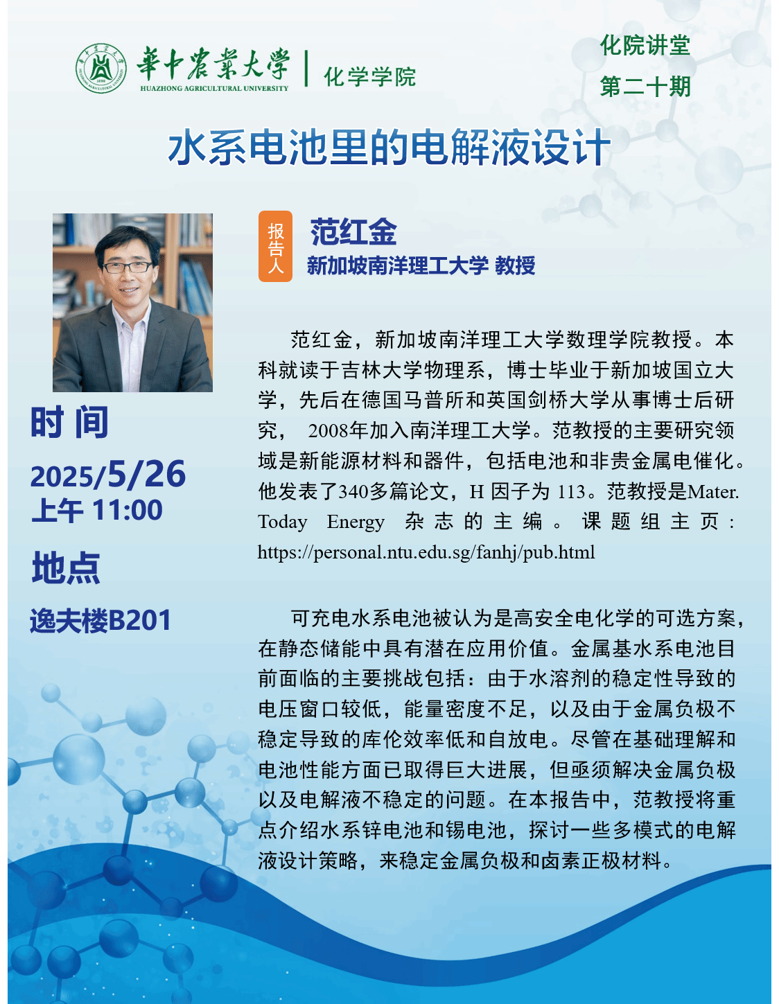 地址:湖北省武汉市洪山区狮子山1号华中农业大学化学楼