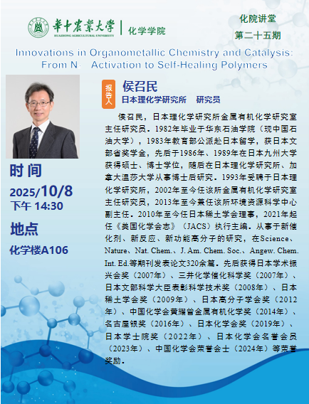 地址:湖北省武汉市洪山区狮子山1号华中农业大学化学楼