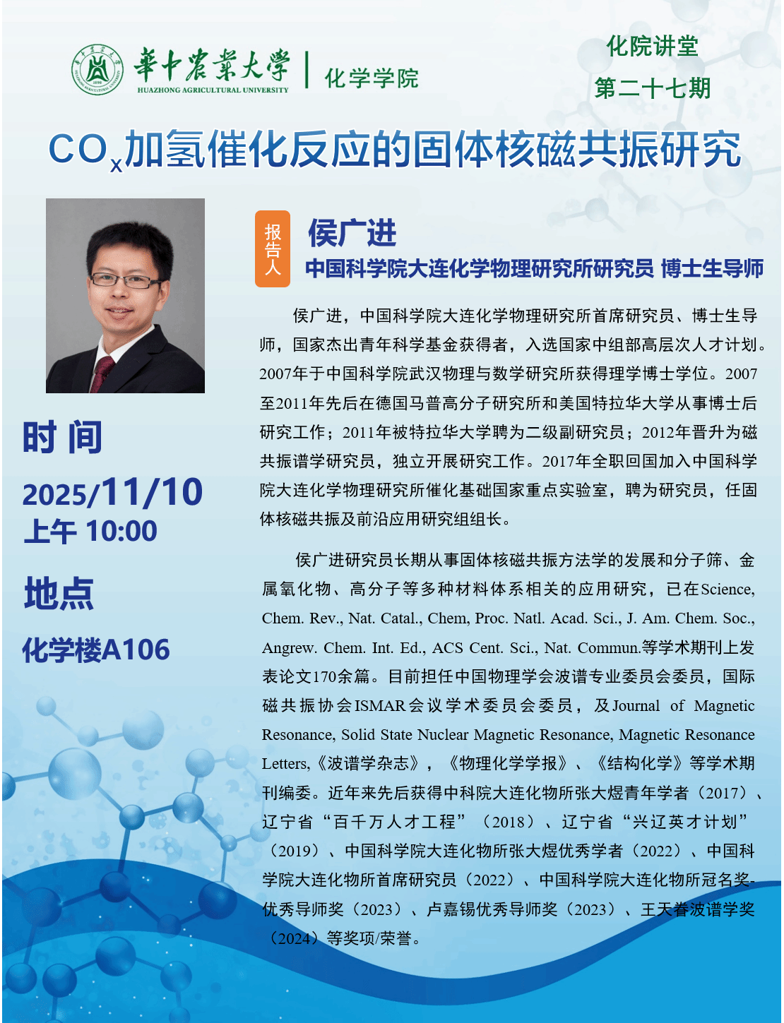 地址:湖北省武汉市洪山区狮子山1号华中农业大学化学楼