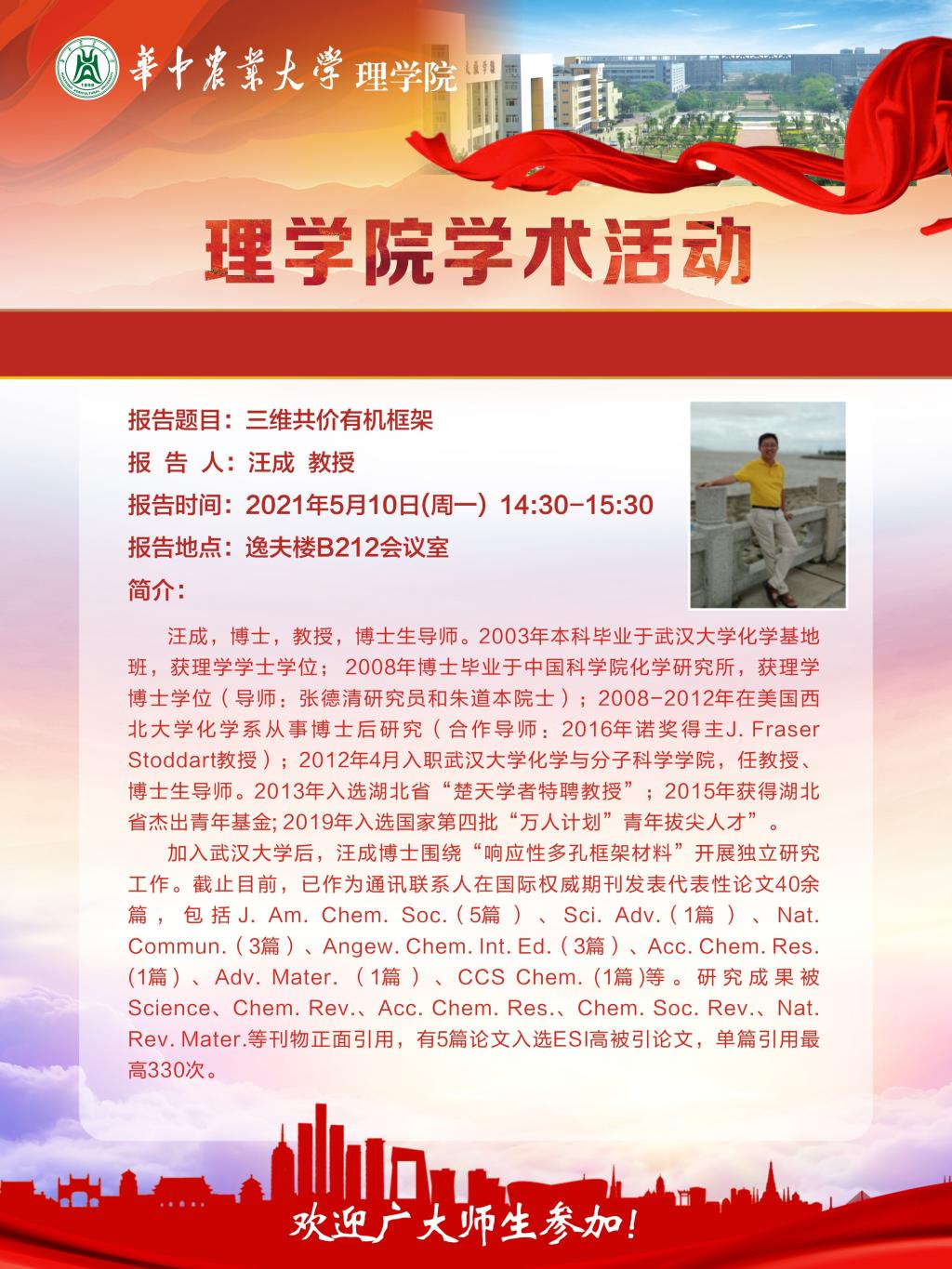 地址:湖北省武汉市洪山区狮子山1号华中农业大学化学楼