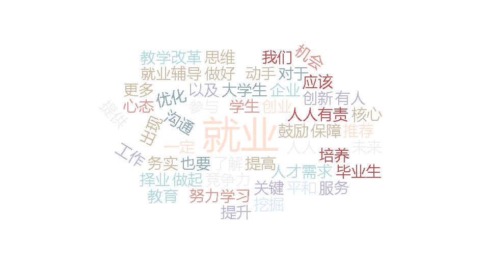 在主题党日环节,支部党员集中学习了习近平总书记在中央政治局第十四次集体学习时的重要讲话精神。与会党员聚焦“坚持把高校毕业生等青年群体就业作为重中之重,拓宽市场化社会化就业渠道”这一内容,分别从班主任和本科生导师的角度出发,以雨课堂弹幕的形式发表了对此次主题党日活动的学习心得,并围绕效保证高校毕业生就业质量提出了有益建议。会议通过雨课堂自动生成的微词云形式(图3)概括了大家所提意见的关键词,也充分体现了党员老师们对于目前高校毕业生就业现状的广泛关注。