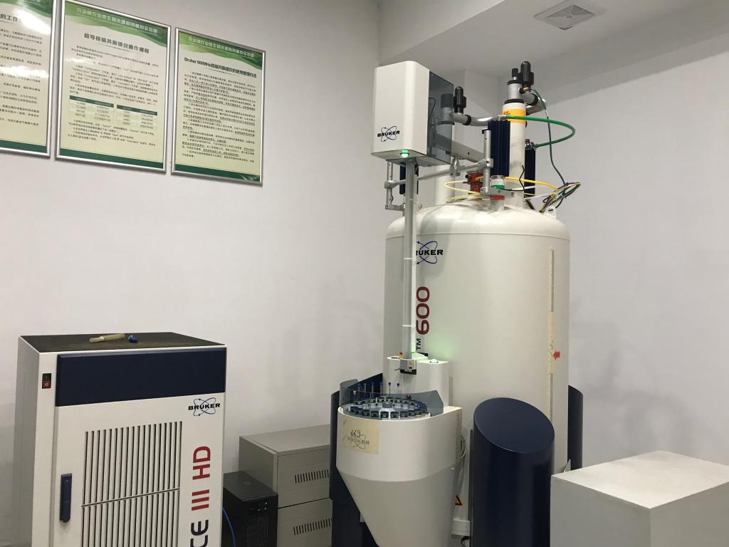 主要用途:Bruker AVANCE III 600 MHz全数字化超导核磁共振波谱仪配有超屏蔽磁体,5mm CPTCI三共振反式超低温探头,高分辨BBO正相观察宽带探头,Z方向脉冲梯度场,ATM自动调谐/匹配附件,变温单元。可进行1H、13C、1H-1H NOESY、1H-1H TOCSY、1H-13C HSQC、HMBC等常规测试,并可进行15N-1H HSQC及蛋白质结构的三维谱测试,广泛应用于化学、化工、制药、食品、生命科学、生物工程等领域中化合物的结构测定。