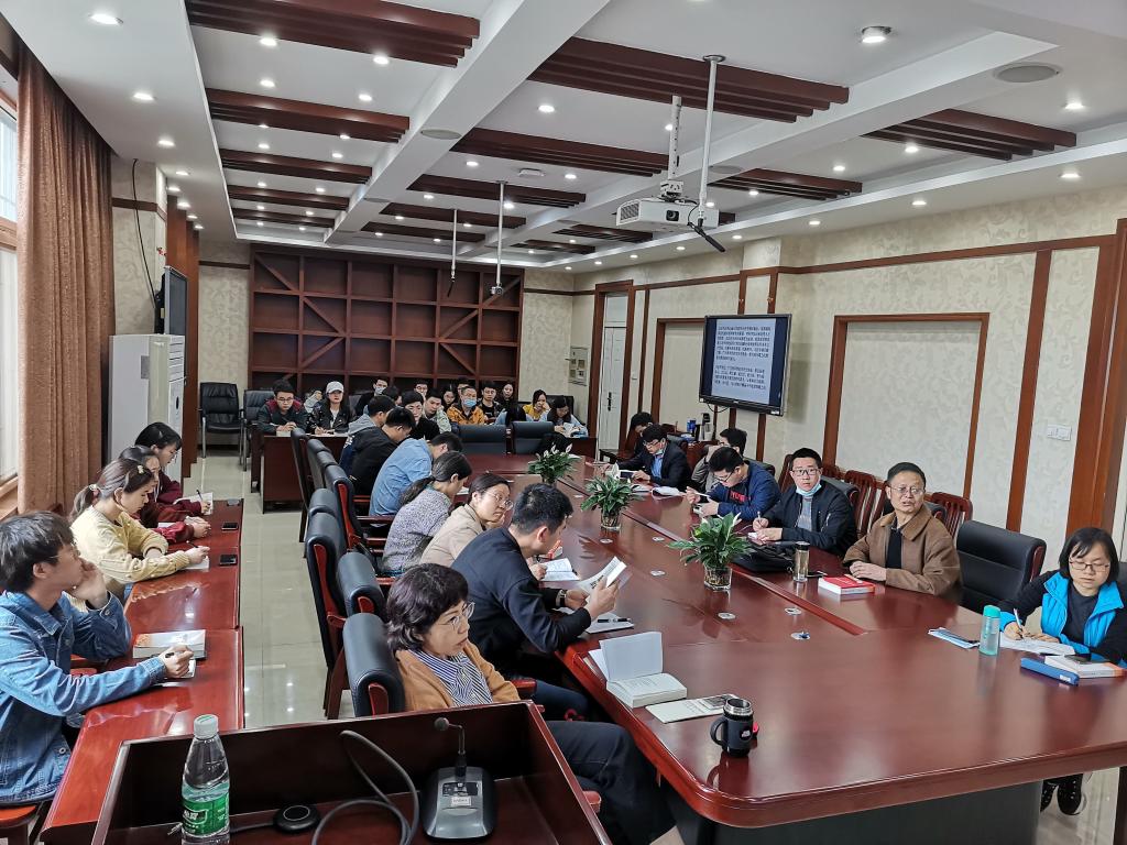 4月22日下午,数学与统计学系教工第一党支部在逸夫楼A109会议室召开党员大会,集体学习了社会主义革命和建设时期党史及习近平总书记在清华大学考察时的重要讲话精神,会议由宣传委员韩群同志主持。